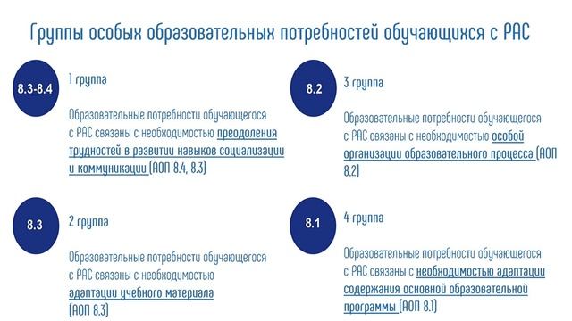 Разработка и реализация АООП для обучающихся с расстройством аутистического спектра в соответствии с требованиями ФГОС, ФАОП НОО, ООО, ФАООП