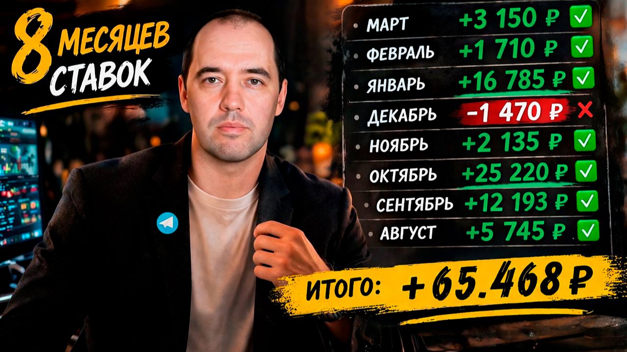 ✅ Мой Telegram: https://t.me/bets_29 🎯 Мои бесплатные прогнозы на спорт 💰 Ежедневные прогнозы - бесплатно в ТГ. А здесь: статистика за 8 месяцев и моя рабочая система. Хочешь понять, как заработать на ставках и реально ли возможен стабильный заработок на ставках в интернете? В этом видео показываю, как зарабатывать на ставках каждый месяц на практике. Разбираю свою стратегию ставок и объясняю, как она работает на дистанции. Это не теория и не обещания лёгких денег. Просто показываю, как заработать на ставках за счёт дисциплины, анализа и правильного выбора матчей. Такой подход и даёт мне стабильный заработок на ставках в интернете. В ролике подробно показываю, как выглядит моя стратегия ставок, какие коэффициенты выбираю и как принимаю решения перед ставкой. Отдельно разбираю стратегию ставок на футбол, чтобы было понятно, как заработать на ставках на спорт даже без большого опыта. Если тебе интересно, как зарабатывать на ставках без хаотичных ставок и лишних эмоций, смотри видео до конца. Я делюсь своим подходом, который помогает выстраивать долгосрочный заработок на ставках в интернете, а не играть на удачу. Также на канале регулярно выходят бесплатные прогнозы на спорт и разборы матчей. Там показываю реальные решения и объясняю логику ставок. Если нужны свежие идеи и бесплатные прогнозы на спорт, переходи в Телеграм - ссылка ниже. Подписывайся на канал, чтобы не пропускать новые видео про стратегию ставок, анализ матчей и реальные примеры того, как заработать на ставках на дистанции. Все мои бесплатные прогнозы на спорт есть в моём Telegram ✅ Мой Telegram: https://t.me/bets_29 🎯 Мои бесплатные прогнозы на спорт 💰 🔥 Запасной канал в MAX: https://max.ru/join/YBo6Hxb4wwcxbVddGEjbLIxUS8gn1s5JAeQjhRr6EfE 📌 Помните: Ставки на спорт могут привести к ФИНАНСОВЫМ потерям. Контент предназначен для зрителей старше 18 лет. Не рискуйте больше, чем можете себе позволить. #какзаработатьнаставках #заработокнаставках #ставкинаспорт #бесплатныепрогнозы #стратегияставок #прогнозынафутбол #ставкинафутбол #футбольнаяставка