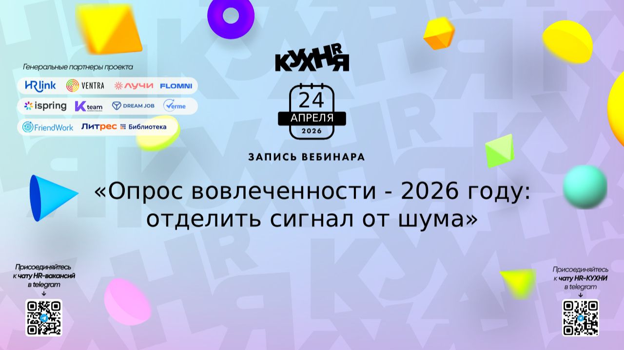 Сегодня опрос вовлеченности есть почти в каждой компании. Но на практике он часто превращается в набор цифр, с которыми непонятно, что делать дальше. Но на практике: — результаты выглядят как “мозаика”, а не как понятная картина — менеджеры не понимают, как интерпретировать данные — выводы не приводят к реальным изменениям — одни и те же проблемы повторяются из года в год В итоге: компании тратят ресурсы на исследования, но не получают управляемого результата. На вебинаре разобрали, как превратить опрос вовлеченности из формального инструмента в рабочий канал коммуникации и источник управленческих решений. Благодаря записи вы: — поймёте, как превратить результаты опроса в понятную “историю”, а не набор цифр — разберётесь, в чем разница между удовлетворенностью, вовлеченностью и лояльностью — узнаете, как получить ответ на главный вопрос: “что делать дальше?” — увидите, как современные методы анализа помогают находить реальные причины — получите подход к работе с инсайтами, а не просто данными 💡 Практическая часть: разобрали современные подходы к анализу данных — социологический и психометрический подходы — работа с NPS и лояльностью — как корректировать “социально желательные” ответы — использование кластерного и причинно-следственного анализа — организационно-сетевой анализ: как понять, “что происходит” в команде В записи — не просто теория, а прикладной разбор, который можно адаптировать под свою компанию. Особенность подхода — это не “ещё один опрос”, а смена логики: — от сбора данных ради отчёта — к поиску инсайтов и управлению поведением И именно это сегодня становится ключевым фактором эффективности HR и устойчивости бизнеса. Присоединяйтесь к чатам и каналам HR-КУХНИ в МАХ: HR-КУХНЯ | Ключевое HR-медиа в MAX - https://max.ru/hr_kitchen HR-КУХНЯ | Мероприятия в HR - https://max.ru/hrkitchenjournal Основной чат HR-КУХНИ - https://max.ru/join/8hmnvHea_Fk4VEPHy2fM8W54K3wcpYCv8_WDsFTLOuc Присоединяйтесь к чатам и каналам HR-КУХНИ в телеграм: - Основной чат HR-КУХНИ в телеграм - https://t.me/+tYgAH0PgPQVkOWIy - Канал HR вакансий в телеграм - https://t.me/+CMNAN2u1hjo3M2Ri - Канал HR-EVENTS в телеграм - https://t.me/hr_kitchen - Канал HR JOURNAL в телеграм - https://t.me/hrkitchenjournal Полезные ссылки: - Каталог HR решений - https://hrkitchen.ru/exhibition - График конференций, бесплатных вебинаров, а также бесплатные курсы – https://hrkitchen.ru/ - Стать спикером HR-КУХНИ - https://hrkitchen.ru/speakers - Подписаться на полезную e-mail рассылку от HR-КУХНИ (новости, гайды, чек-листы, подарки от партнеров) - https://hrkitchen.ru/subscribe