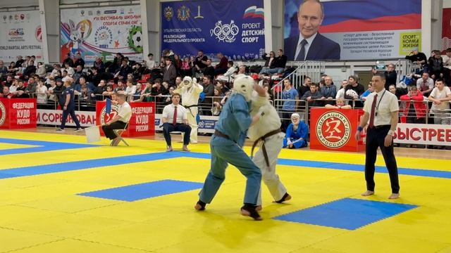 21.02.2026 в Ульяновске прошли VI Всероссийские соревнования по кудо. Финал в категории до 250 ед. 16-17 лет. В синем Захар Голубев (Ярославская обл.), в белом Алик Амоян (Ярославская обл.).
